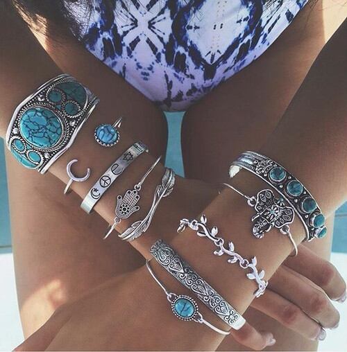 夏につけたくなるターコイズシルバーブレスレット。